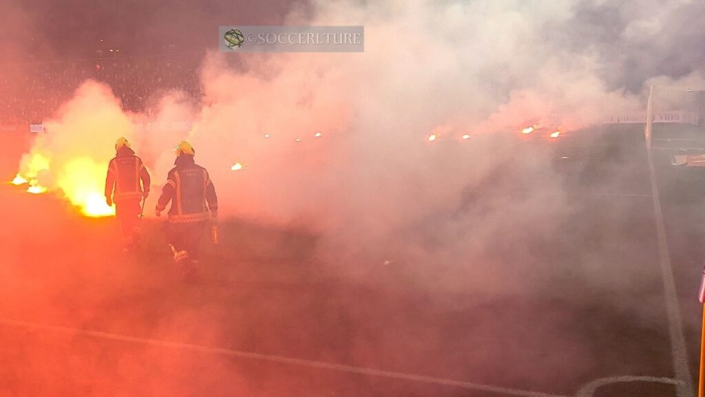 実際UEFAチャンピオンズリーグの華やかな舞台と凡そかけ離れた旧東欧諸国のリーグに、リスクも顧みず果敢に挑む若者達が間断なく続き日本人のイメージも変わりつつある。十代のシェリフサポーター達はディナモサポーターの東洋人に面食らうが、ディナモはフーリガンだからと優しく忠告する長束氏の何とも日本人らしいエピソード。ちなみに名前はバッド·ブルー·ボーイズだが、彼らがアウェ-にやってくればフィールドはこんな風に真っ赤な状態。投げ込まれる発煙筒の数は一桁ではおさまらない。