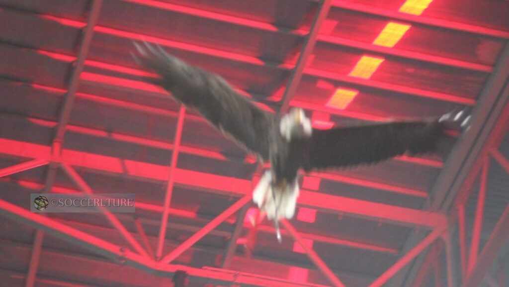 最後の写真はルスで上空を舞うアギア·ヴィトーリア=鷹。このスタジアムでは試合開始前のセレモニーではお馴染みの光景ではあるが、スッカリ頭から抜け落ちていた。慌ててレンズを向けたから、こんなピントの甘い写真に。世界の名だたる快速ウインガ-をフレ-ムに収めて多少自信があったのだが、本家の鷹の翼は、日頃目にするカラスや鳩とは比べものにならない閃光を思わせる速さ。映画『リスボンに誘われて』は、サラザール独裁政権下に生きた若き革命家たちの物語である。大航海時代に植民地化したアンゴラとモザンビークではソ連·キューバに支援された独立革命軍との戦争が続いていたが、1974年リスボンでの無血革命により独裁政権は崩壊した。翌75年両国の独立を理由に、国境を下り南アフリカへと移住を余儀なくされたポルトガル人達が存在した史実を、ポルトガル代表を鼓舞する子孫から学んだのが南アフリカ大会だった。飛翔するその姿が還暦を過ぎた耄碌爺の脳内にまるで新鮮な空気を注入するかのように十五年前の真っ赤な記憶を鮮やかに蘇らせてくれたのである。〖第九十九話了〗