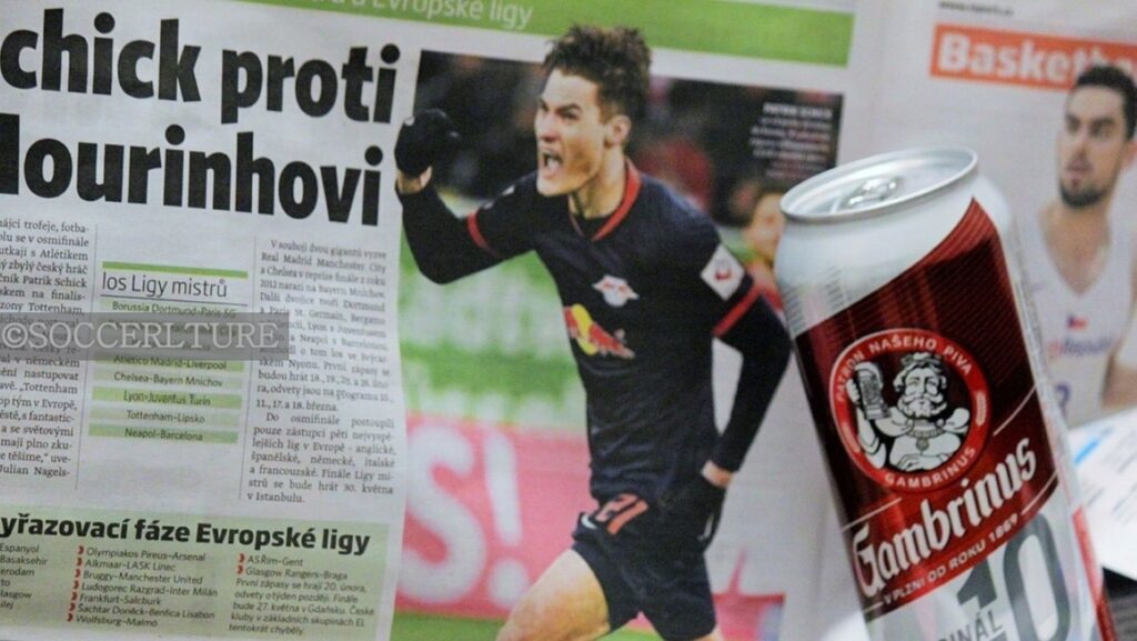 2014-15のグループステ-ジでも対戦したベンフィカ、その際に交換した記念品がBayArenaに展示されていた。孫興民:Son Heung Min【1992年7月8日生】が移籍するまえのシ-ズンだったろうか。今月6日ジョゼ·モウリーニョ:José Mourinho【1963年1月26日生】 監督率いるベンフィカと対戦した第四節。後半二十分途中出場のパトリック·シック:Patrik Schick【1996年1月24日生】のゴ-ルで決着。シティ戦でもCL二戦連発、国内でもカップ戦を含め十一試合で六得点二アシストと好調をキ-プしている今季のシック。ベンフィカ戦での決勝ゴ-ルで思い出したのはこちらのチェコ語の紙面とガンブリヌスビール缶。Schick proti Mourinhoviの見出し。シックがライプツィヒのユニフォーム姿だから2019-20シ-ズンの記事。