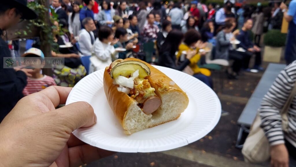 上の写真はオ-プンデ-での無料で貰えたホットドッグ。意外な感じもするがプルサ(ソーセージ)は国民的ソウルフード。