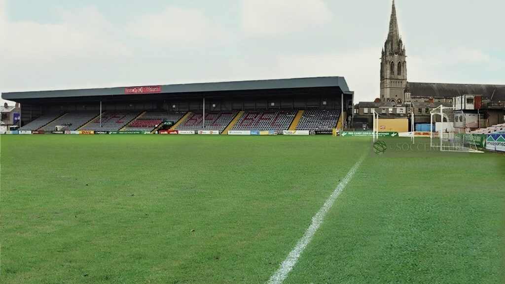 目指すはダリーマウントパーク。ゴシック様式の建築·装飾で視線を惹きつけるのは北ダブリンの重要なランドマーク。ニューリー(北アイルランド)から取り寄せた自然石で外壁を施したフィブスボロの聖ピータース教会が隣接する。十九世紀初頭、治安が悪く多くの貧困家庭が暮らすフィブスボロ。1826年に設立されたカトリック学校の最上階を礼拝堂に改築して教会に。1907年には尖塔の建設に着工する。イプスウィッチタウンFCと同姓同名のハリー·クラーク:Harry Clarke【1889年3月17日生-1931年1月6日没】が手掛けたステンドグラスは、初期の傑作の一つ。「聖心の礼拝」と題された三枚組の作品は1919年に制作され、礼拝堂に組み込まれた。
