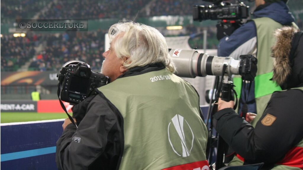 ピッチサイドで隣さんが着ているフォトグラファー用のビブス。ロゴマークの上に小さく2015/18と記されているのがこの写真で伝わるだろうか。きっとこのシーズンでロゴのデザインを変更するのかと思っていたが、翌年は変わらず。’21-22にロゴデザインのトロフィーが左右対称の直線志向に変わったのだが、これが、美しくない。前のほうがよかったと思っていたらやはり不評だったのか昨シーズン変更された。トロフィーにVの字が入ったものに。カンファレンスリーグとの差別化を図りたいから直線的になるのは致し方無し。それでも前よりはいくらかまマシ。