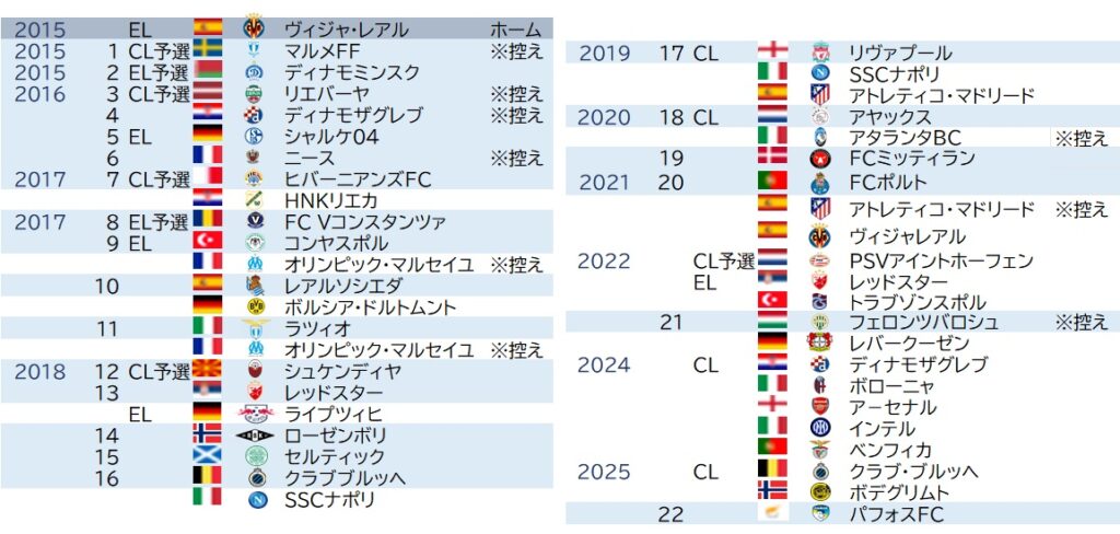 したがって多い日は、一日で三都市=三つのスタディオンを撮影したりもするので、1〉よりも2〉が多くなる。試合のない無人のスタディオンは基本的に一人で十分程度撮影して速やかに立ち去る。建物の外で画像を確認しながらか過去の試合の記録を紐解き感慨に浸るのだがその逆の楽しみも。第64話と91話に昨年訪問したリマソルの写真をアップしている。先月のCLではモナコがパフォスとこのスタディオンで対戦。別表に掲げたとおり、南野にとってキプロスは二十四ヵ国目となるこの試合で今季CL初得点も決めている。電車内で試合結果を携帯で確認して、ニヤニヤしていたから目の前に立っていた女子高生には「このオヤジ、キモい」と思われたかもしれない。彼女の心境はともあれ、22年に完成したキプロスのスタジアムのピッチに立った大和民族は、自分と南野の二人だけと悦に浸り頬を緩めたのは間違いない。