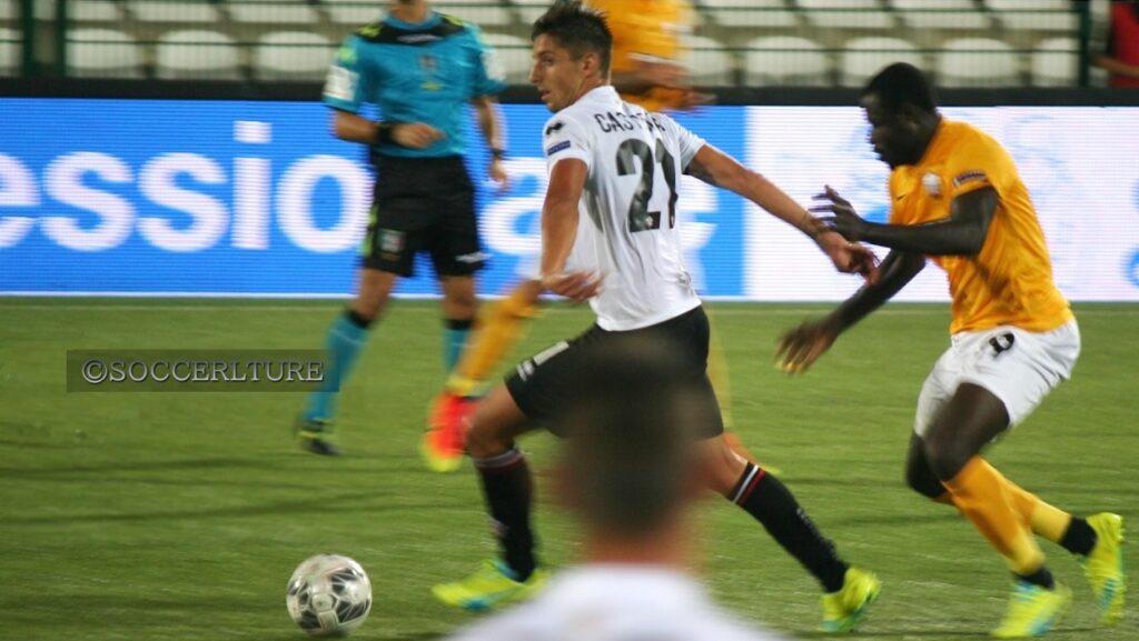 イタリアでは珍しく人口芝を使用しているスタジアム。不可解な判定が目に付いたとはいえ、中々如何して白熱した好ゲームに。中盤の攻防ではプロヴェルチェッリが優勢で、存在感を発揮したのは右ハーフの21番ルカ·カスティーリャ:Luca Castiglia【1989年3月17日生】クーオネ県チェバの出身。典型的なセントラル·ミッドフィルダータイプ。前半イエローを貰ったもののこの日はフル出場。