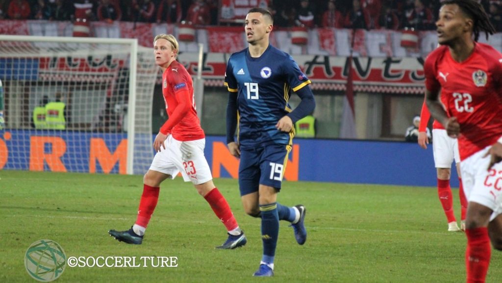 このアイスランド戦でのズマイェヴィはウィーンで撮影した時同様、上下ウェアにストッキングまで紺一色。UNLの第一回大会2018-19最終戦ではオ-ストリア代表と対戦。エルンストハッペルのピッチサイドでカメラを握っていた。A昇格を決めて歓喜するその姿に’16年大阪でキリンカップ優賞が思い出された。