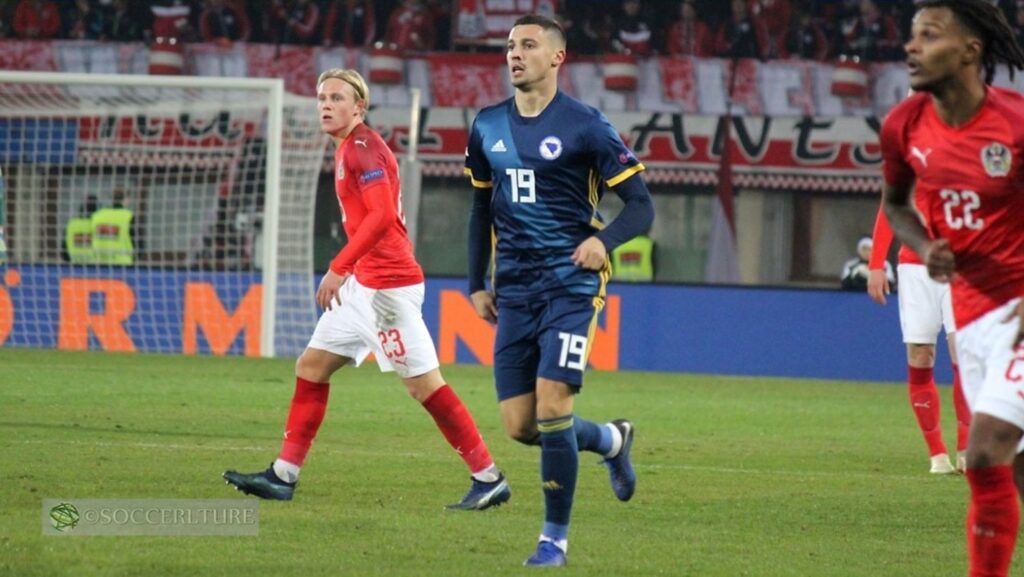 このアイスランド戦でのズマイェヴィはウィーンで撮影した時同様、上下ウェアにストッキングまで紺一色。UNLの第一回大会2018-19最終戦ではオ-ストリア代表と対戦。エルンスト·ハッペルのピッチサイドでカメラを握っていた。A昇格を決めて歓喜するその姿に’16年大阪でのキリンカップ優勝が思い出された。