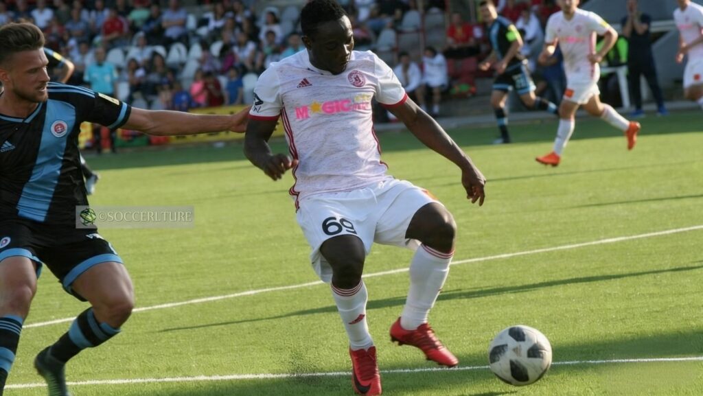 ポーランド語ではイタリアやスペインと同じくFを用いるが、英独仏ではP。追加点を奪われた直後トルナヴァベンチが二枚替えで送り出した一人がナイジェリア出身のフィリップ・アザンゴ:Philip Azango【1997年5月21日生】。スパルタ・トルナヴァは、翌24年の同コンペティション予選三回戦でもポーランドのヴィスワ・クラクフと対戦する偶然。総勢二十八人がキッカーを務める伝説のPK戦で敗退するのだが初戦の逆転弾に続き二戦目も延長百七分の同点アシストを決める大活躍。写真のASトレンチーン時代も含めスロバキアでの二百試出場も目前。スパルタとの契約は来シ-ズンまで。