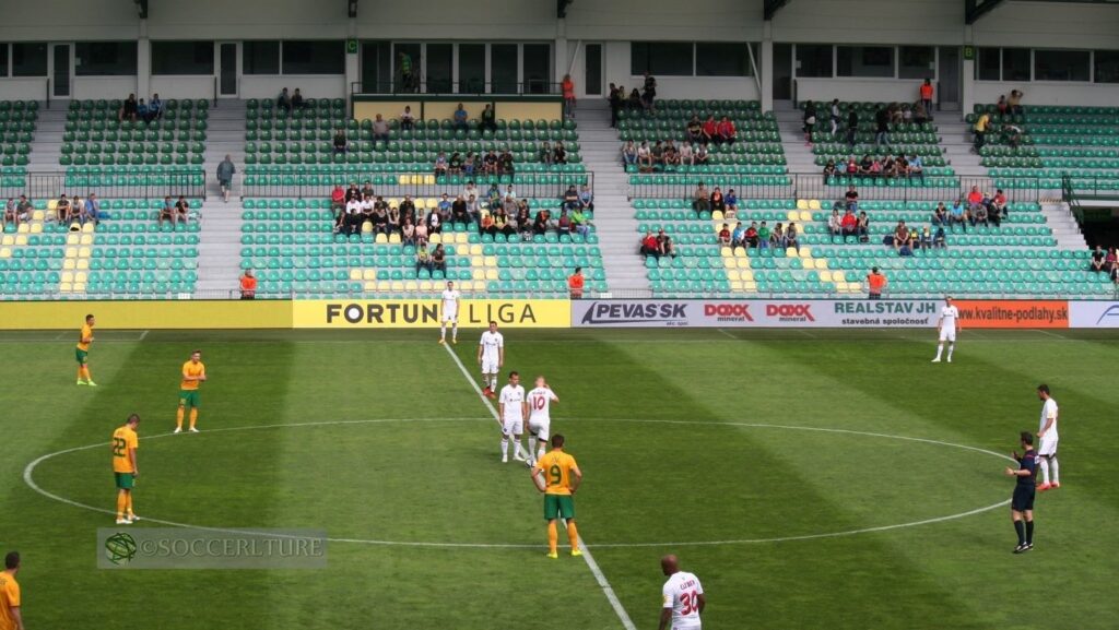 第94話はMŠKジリナの本拠地シュタディオーン·ポド·ドゥベニョム。まず初めに、このスタジアムは駅からのアクセスが最高。駅舎から線路を挟んで北側にスタジアムが隣接しているので駅のホームから位置が確認できる。プレス室には、2008年UEFA杯アヤックス戦の写真パネルが飾られていた。あの日あの時は■2015年5月30日フォルタナリ-ガ第33節MŠKジリナ対スパルタク·トルナヴァ。2014-15シーズンの最終戦。現地プレスに日本から来たと伝えると、おともでプレス席に座れた。このあたりがスロバキア。おそらくチェコでは有り得ない。できればチケットを買う前に声をかけてくれればよかったのだが。配られたコピーに目を通しても知っている名前がないのは当然。電光スコアボードにも表示されたマルティンが二人、ミロシュが二人、・・・名前にMばかり並ぶ。誰に注目すればよいのかと尋ねると「ミランだ!」と即答が返る。···ミランも両チームにいるがジリナのミラン·シュクリニアル:Milan Škriniar【1995年2月11日生】らしい。