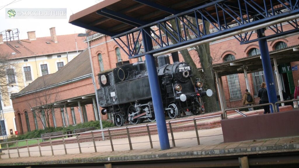 パプリカを使った代表的な民族料理といえば具沢山スープのグヤーシュ。牛肉、玉ねぎ、じゃがいも、人参とお馴染みの具材。調理方法は、各家庭で千差万別。我が家オリジナルが一番美味いと思えるのは日本のカレーライスと同じ。ハンガリーの食堂で聞いたレシピによると、緑パブリカ、黄パブリカ、辛いパブリカ、パプリカパウダーと複数のパプリカをこれでもかと使う。アジアの遊牧民族のマジャール人が野外生活で食べていた伝統の料理らしく、このグヤとは「牛飼い」を意味する。停車間近に、進行方向右側に真新しいスタジアムのスタンドが見える。横のサブグラウンドでプレーする姿は見かけても、スタンドの周りは作業員しかいない。