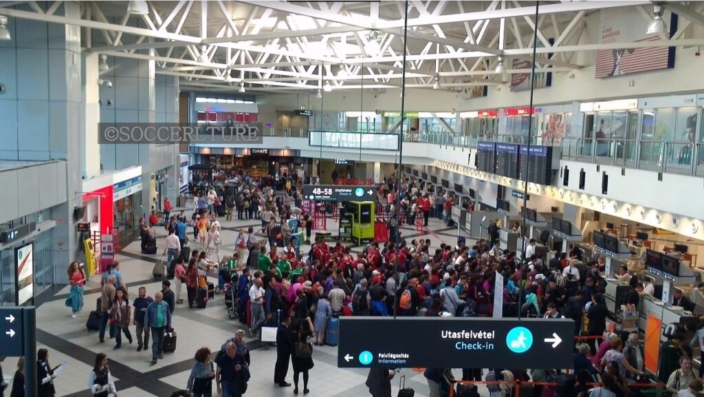 ケチュケメートから、ブダペストの南東端に位置するフェリヘジ駅で降りたらリストフェレンツ国際空港行きのバスに乗り換える。東京までブダペストからの直行便を運航している航空会社はないから北京を経由してからの帰国。チェックインカウンター前には真っ赤なポロシャツの一団。胸には見覚えのあるエンブレム。ハンガリーではバスケやハンドボ-ルの人気も高い。しかしこの選手の人数からして十名以上の団体種目。となるとラグビーかサッカーだが明らかに体型が華奢。消去法でフットボ-ラ-と見て間違いない。